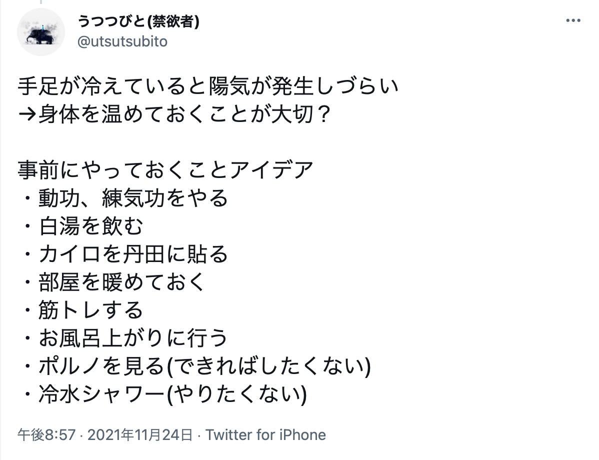 もっと身体を温める必要があったのかもしれないし、そもそも意味がないのかもしれない。